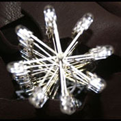 The fiber optics that surround and intertwine with the LED structures pulse with light in subtle shades of red, blue, and purple in response to low ultrasonic heartbeat sounds, representing the internal siege of the body itself.